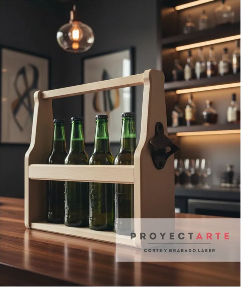 Porta Botellas + Destapador Proyectarte, Soporte Madera