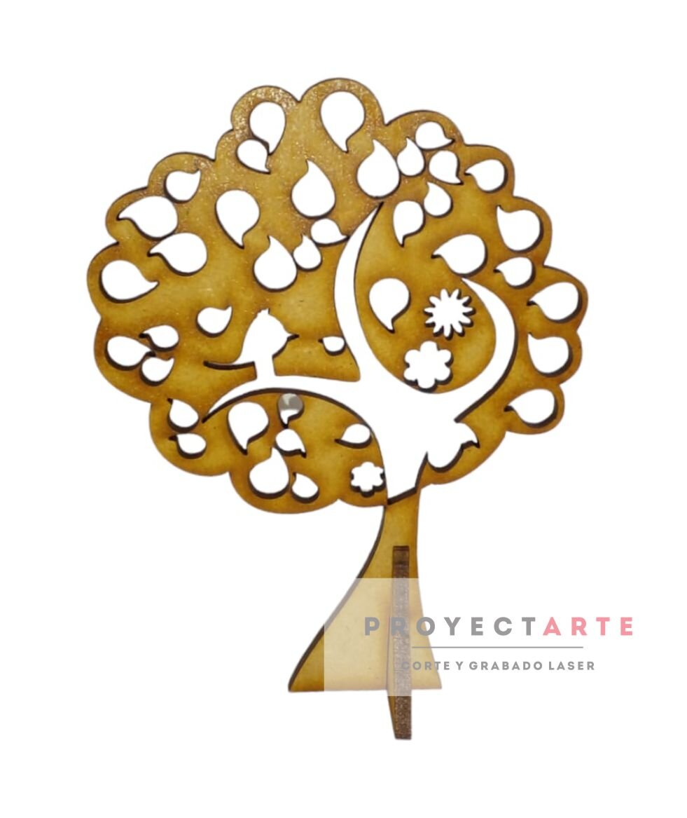 Árbol con pajarito y flores