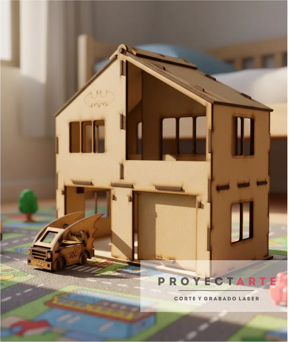Juego Autito + Garage Casa Batman Proyectarte, Madera, Niños
