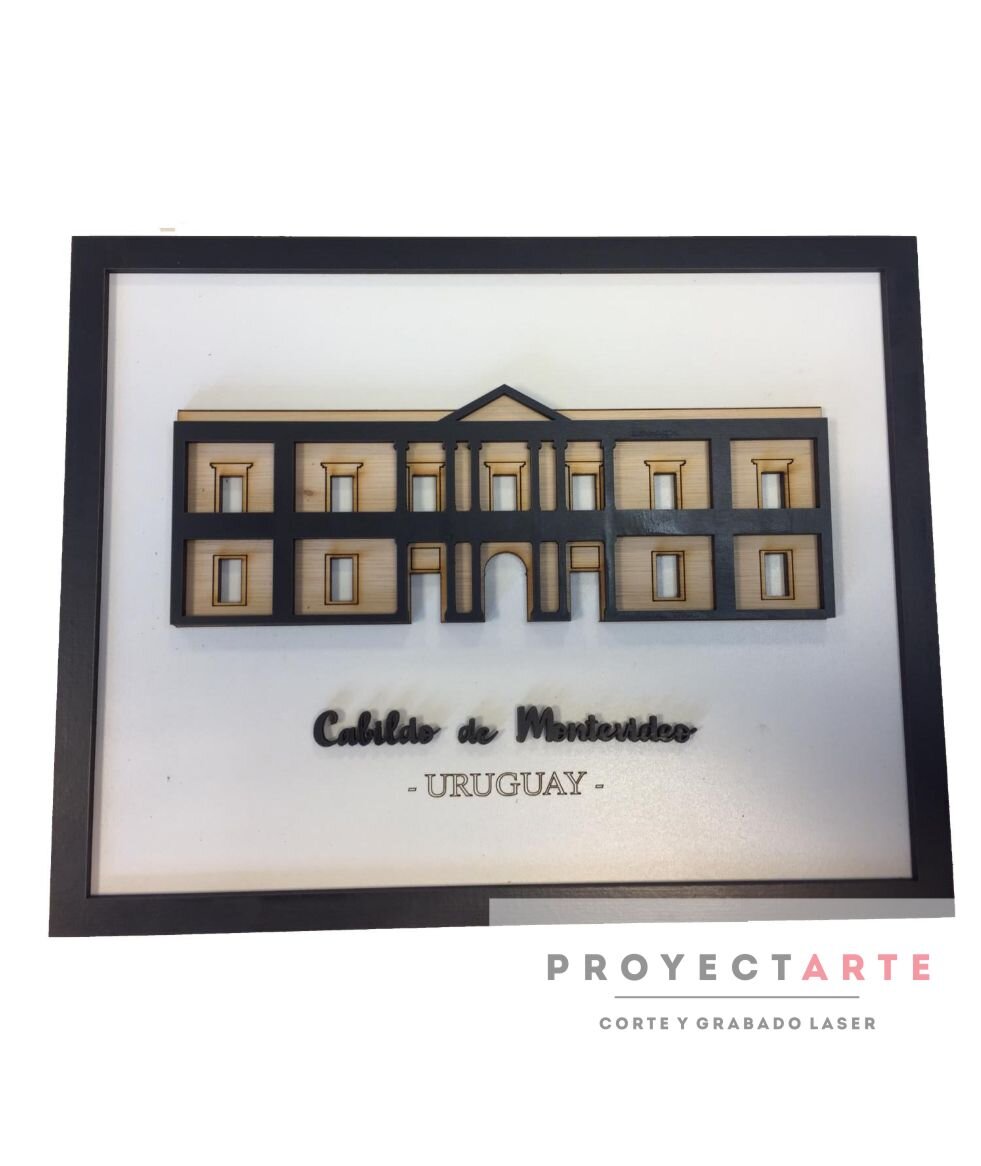 Cuadro 3D de la colección «Ciudades» realizado en fibra de madera con detalles y marco en laminado negro. Medidas: 19x24cm