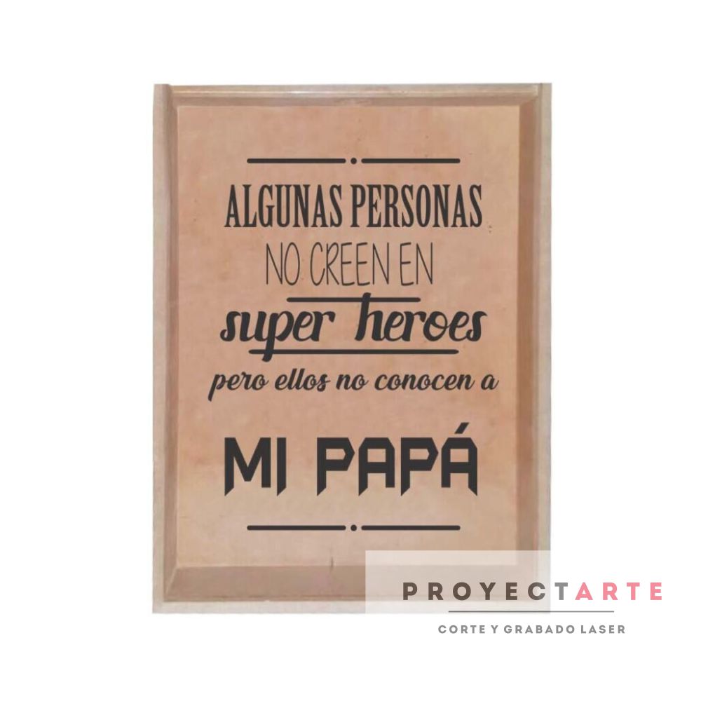 Caja Corchera o Porta chapitas en mdf. Medidas: 30x40x4 cm. Con tapa de acrílico y frase