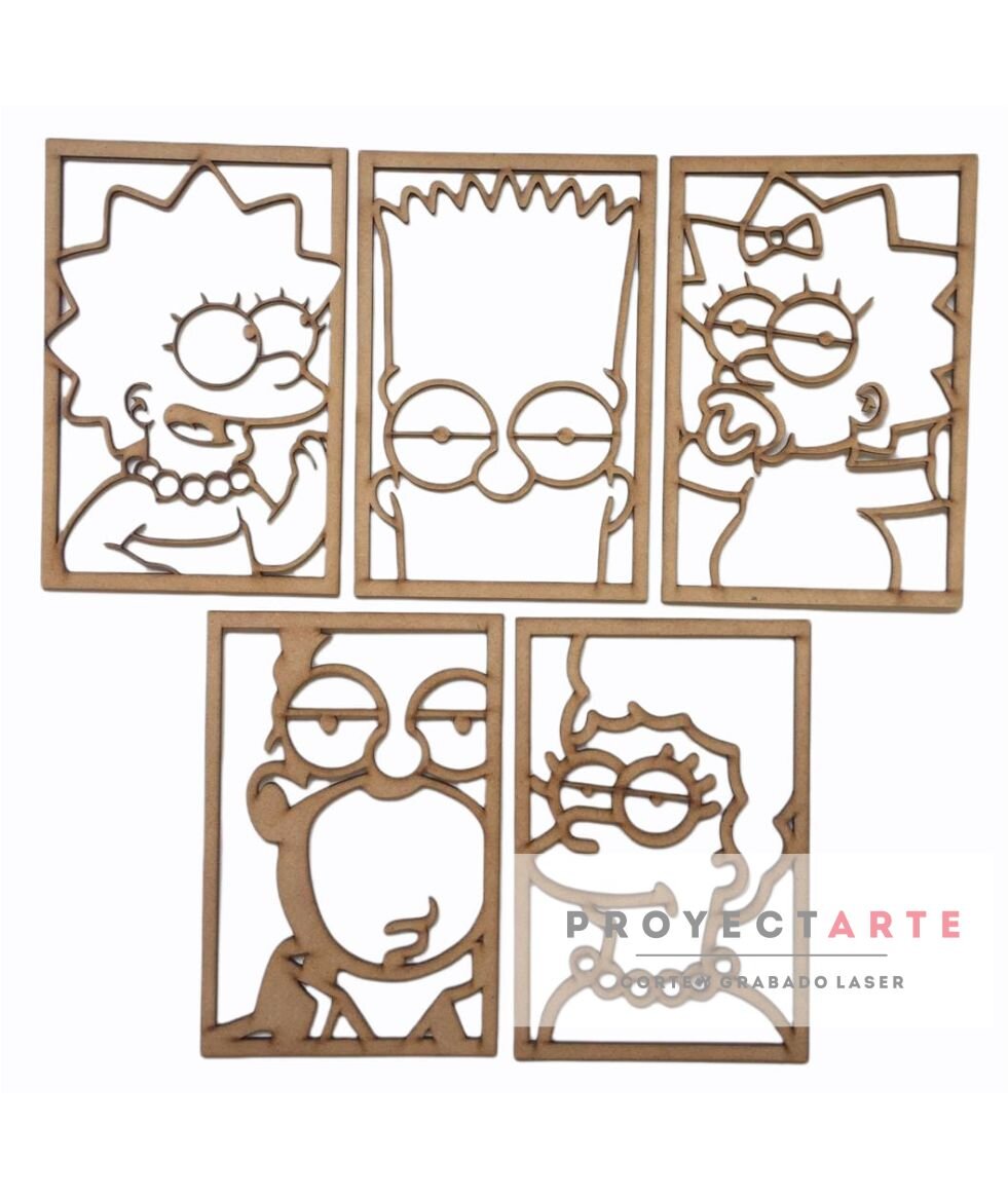5 cuadros decorativos con toda la familia Simpson. En caso de que se desee una unidad con un solo personaje, debe aclarar de cual se trata en los comentarios y el precio unitario será en material y medida seleccionado para los 5 modelos, por 0,3.