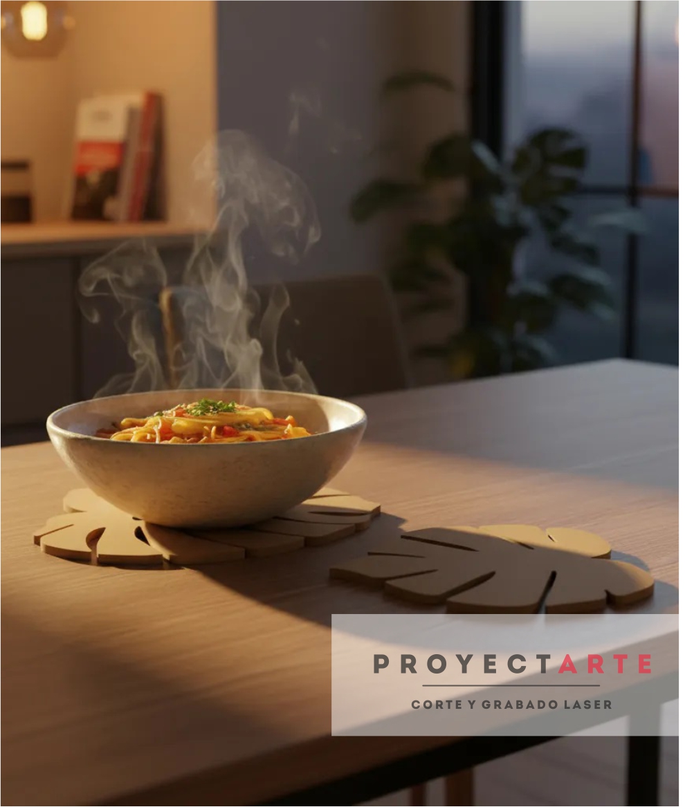 Dos hojas grandes en forma de esqueleto de caballo realizadas en mdf de 9mm. Tienen 4 patitas. Medidas: 34cm x 30cm. y 25cm x 22cm