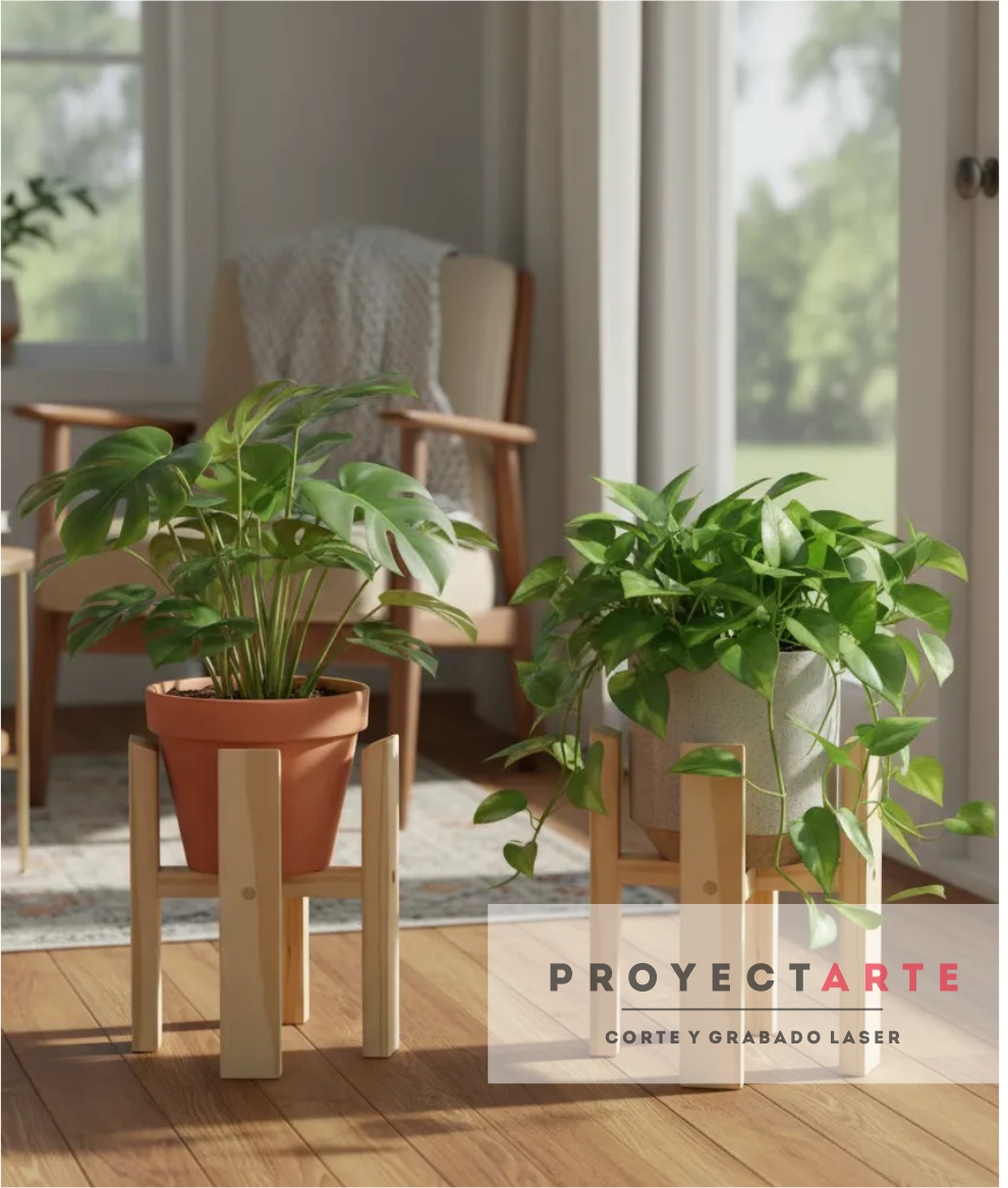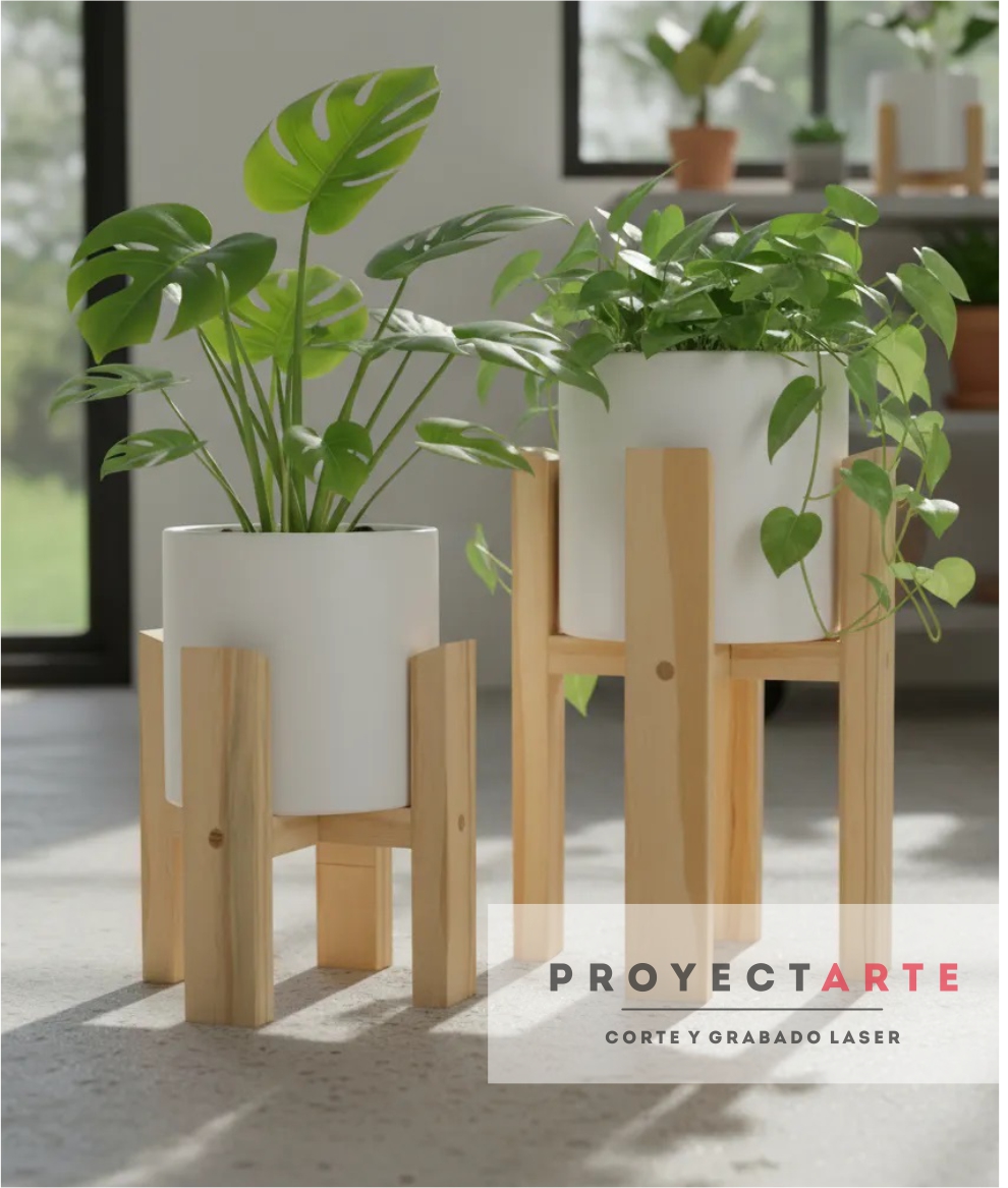 Juego de maceteros, fabricados en madera de pino.