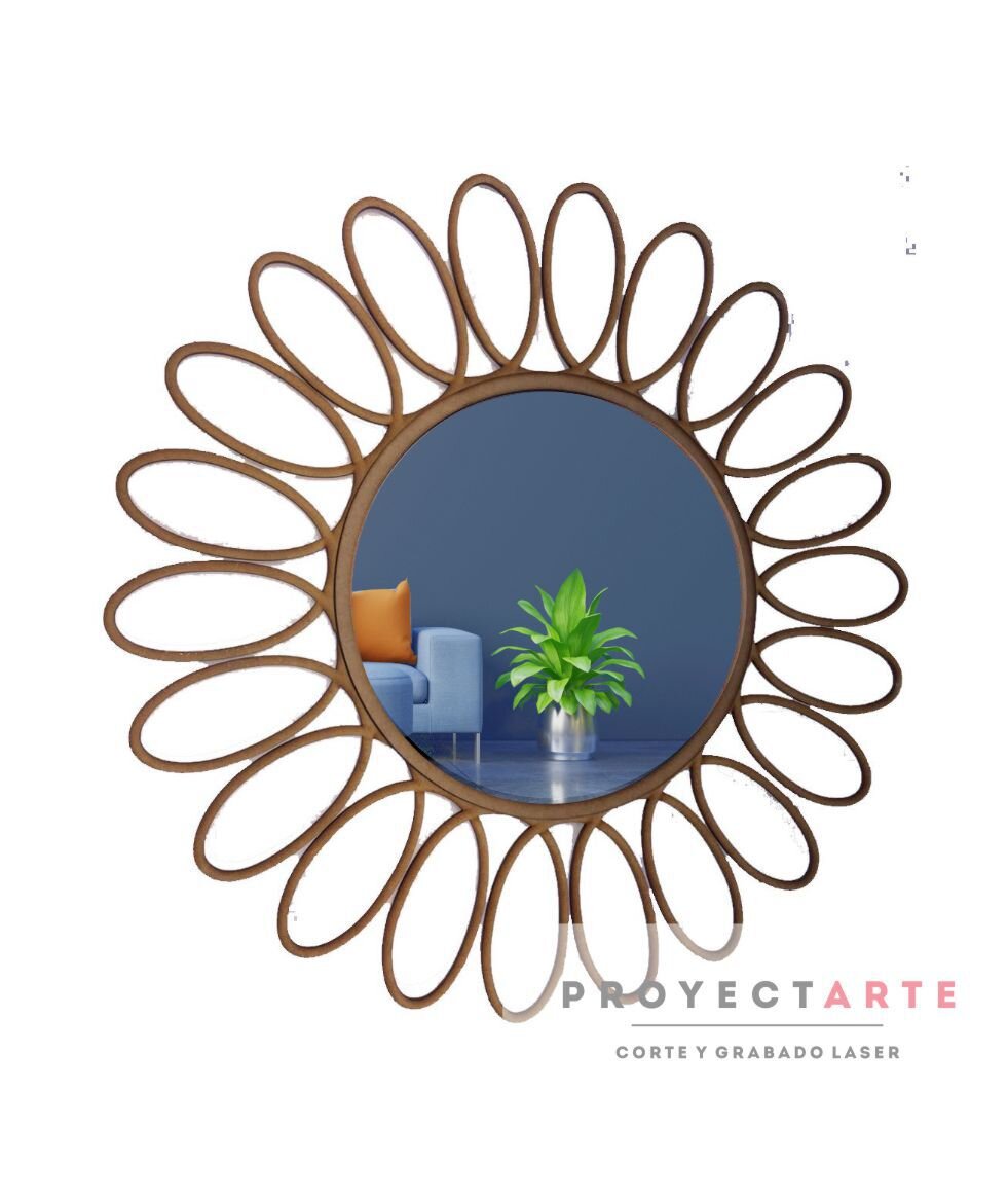 Diámetro total 45cm Área del espejo 22cm Realizado en mdf de 3mm.
