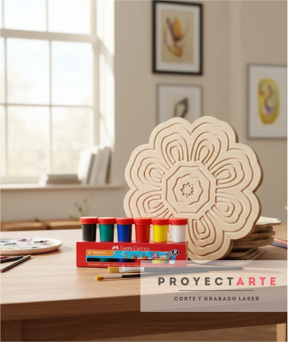 Artículo tipo cuadro realizado en mdf de 5,5mm con ranuras marcadas en bajo relieve que facilitan la pintura.