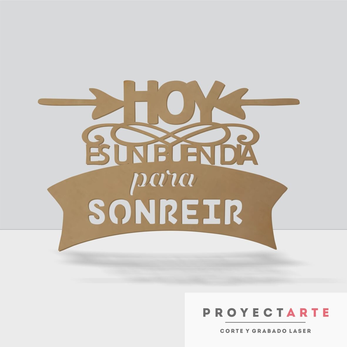 Cartel calado: Hoy es un buen día para sonreír. Altura mínima recomendable: 8 cm