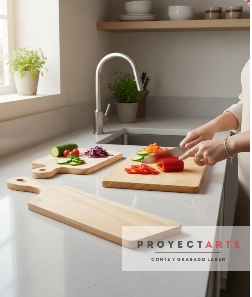Tablita Medidas: 30x18cm incluyendo el agarre. Tabla grande con curvatura Medidas: 50x13x1.5cm incluyendo el agarre. Tabla chica con curvatura Medidas: 34×12.5×1.5cm incluyendo el agarre. Tablas realizadas en pino seleccionado,