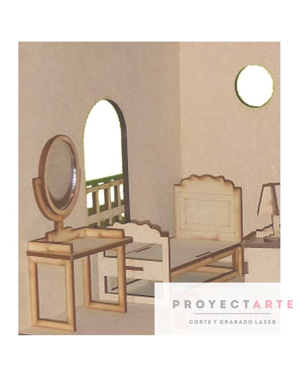 Kit dormitorio para casita de muñecas. Material: MDF 3mm.