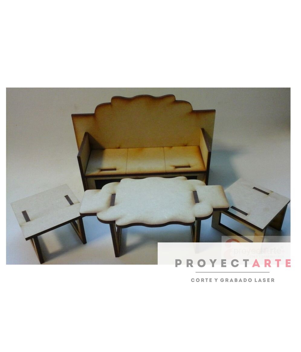 Kit living para Casita de muñecas. Material: MDF 3mm.