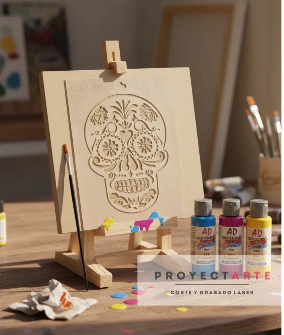 Kit Arte Proyectarte, Mini Atril, Pinturas, Pincel Y Stencil