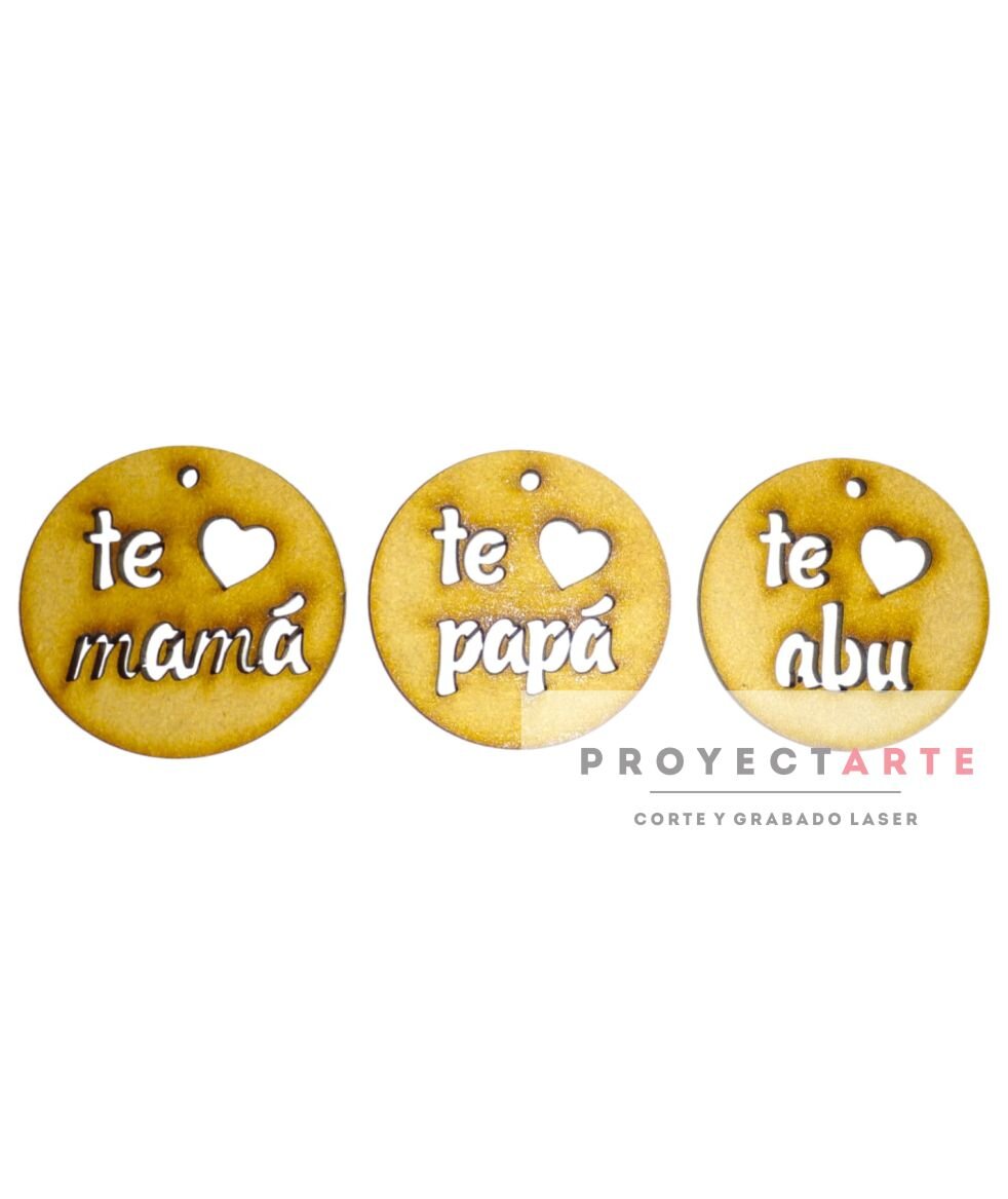 Llavero Te <3 mamá, papá, Abu. *No incluye el aro y cadenita. Lo podes pedir en el código ex101. Madre/Padre/Abuelos