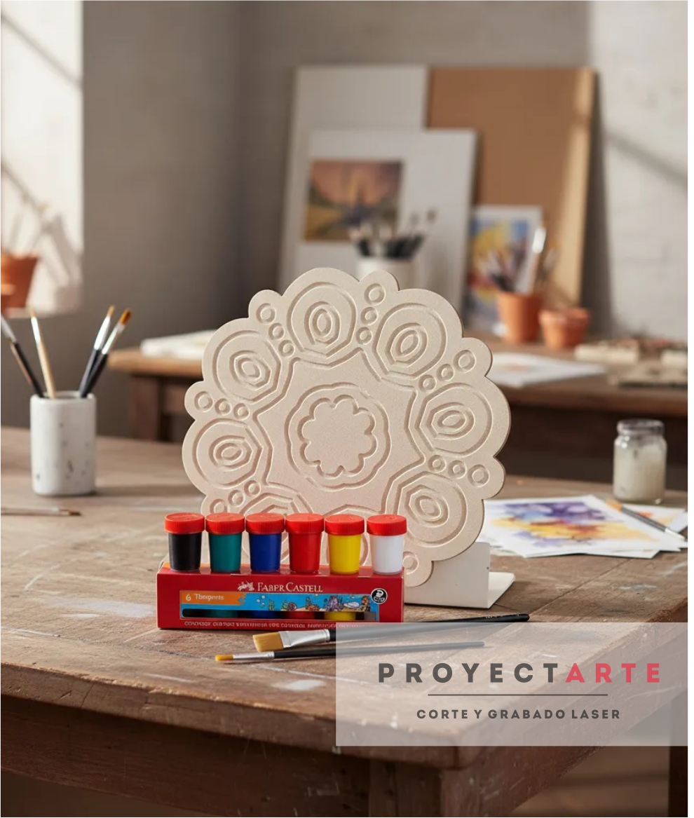 Artículo tipo cuadro realizado en mdf de 5,5mm con ranuras marcadas en bajo relieve que facilitan la pintura.