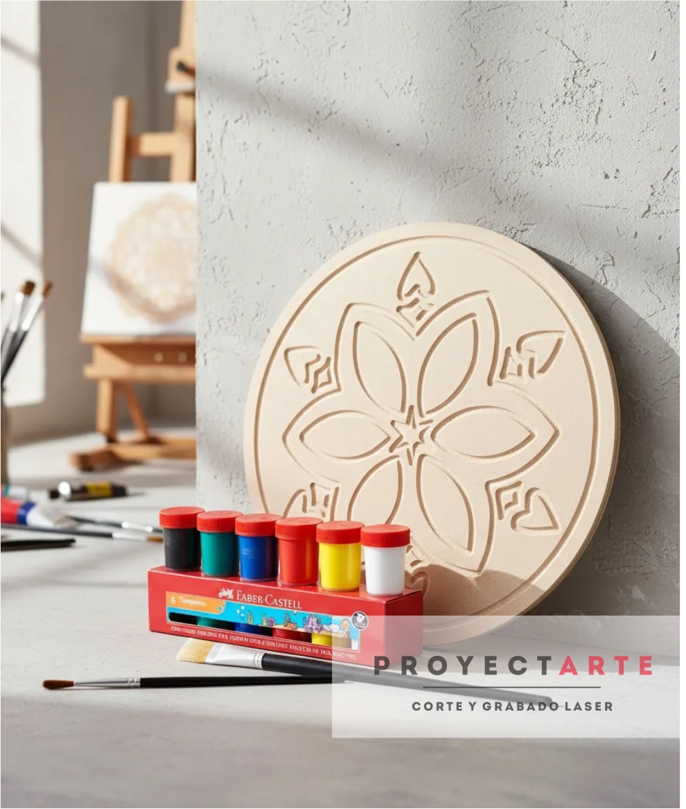 Artículo tipo cuadro realizado en mdf de 5,5mm con ranuras marcadas en bajo relieve que facilitan la pintura.