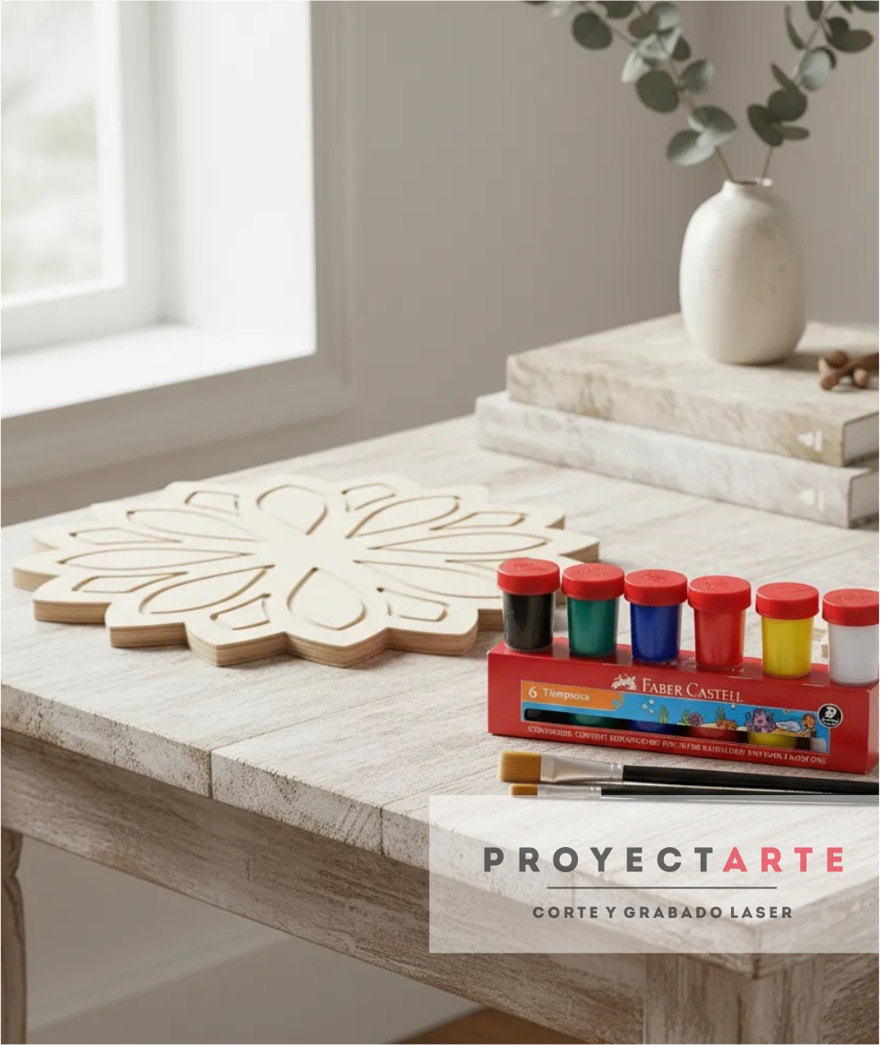 Artículo tipo cuadro realizado en mdf de 5,5mm con ranuras marcadas en bajo relieve que facilitan la pintura.
