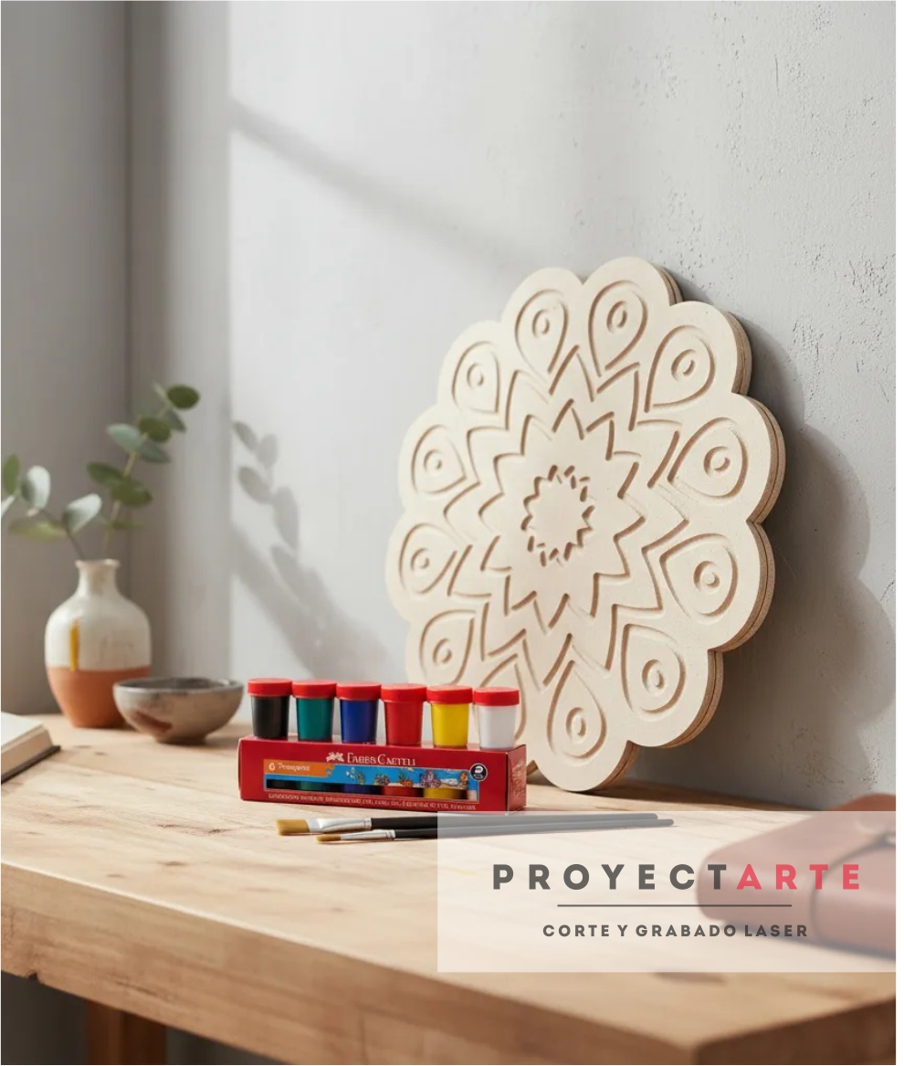 Artículo tipo cuadro realizado en mdf de 5,5mm con ranuras marcadas en bajo relieve que facilitan la pintura.