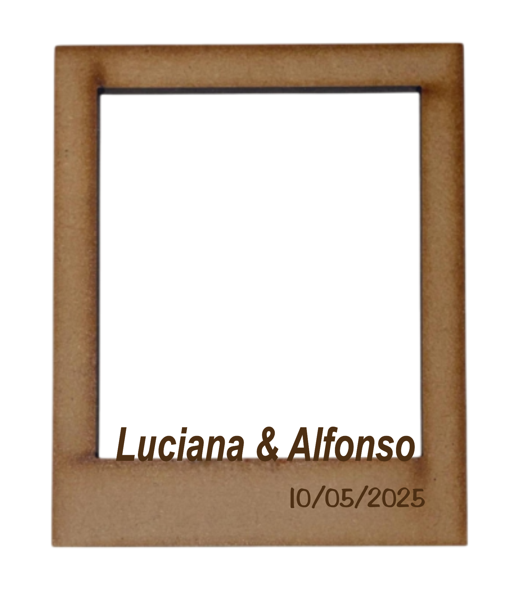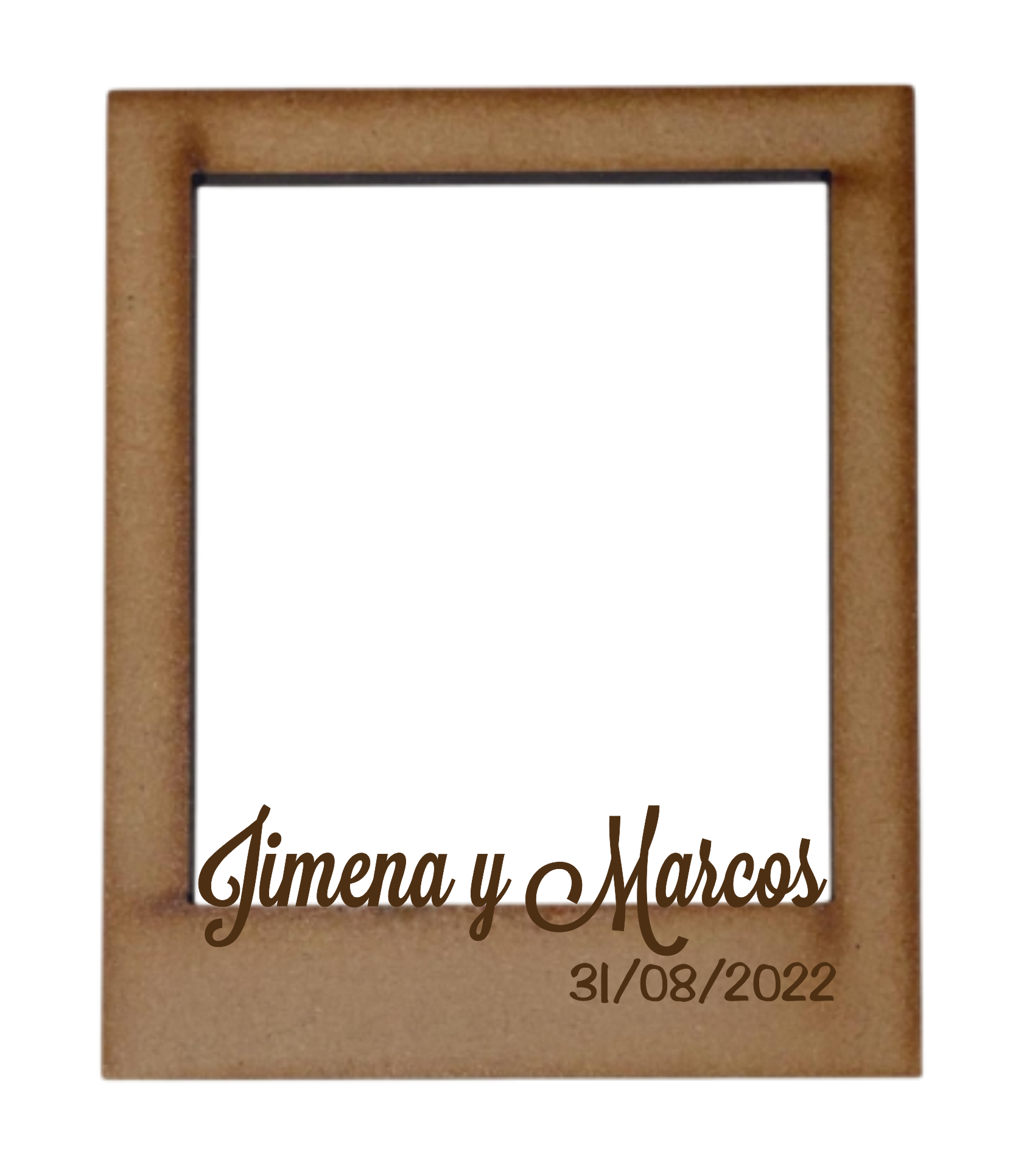 Marco polaroid con nombres calados y fecha. Mide 1,10cm x 90cm y el espacio para la foto es de 70cm x 80cm