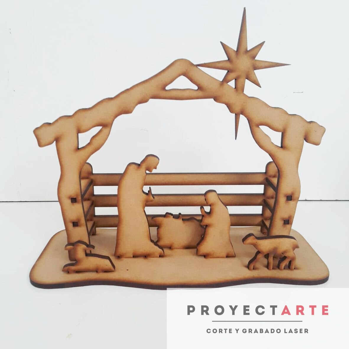Medida pesebre: Largo 18.5 cm Alto: 16.5 cm. Mdf 3mm NAVIDAD