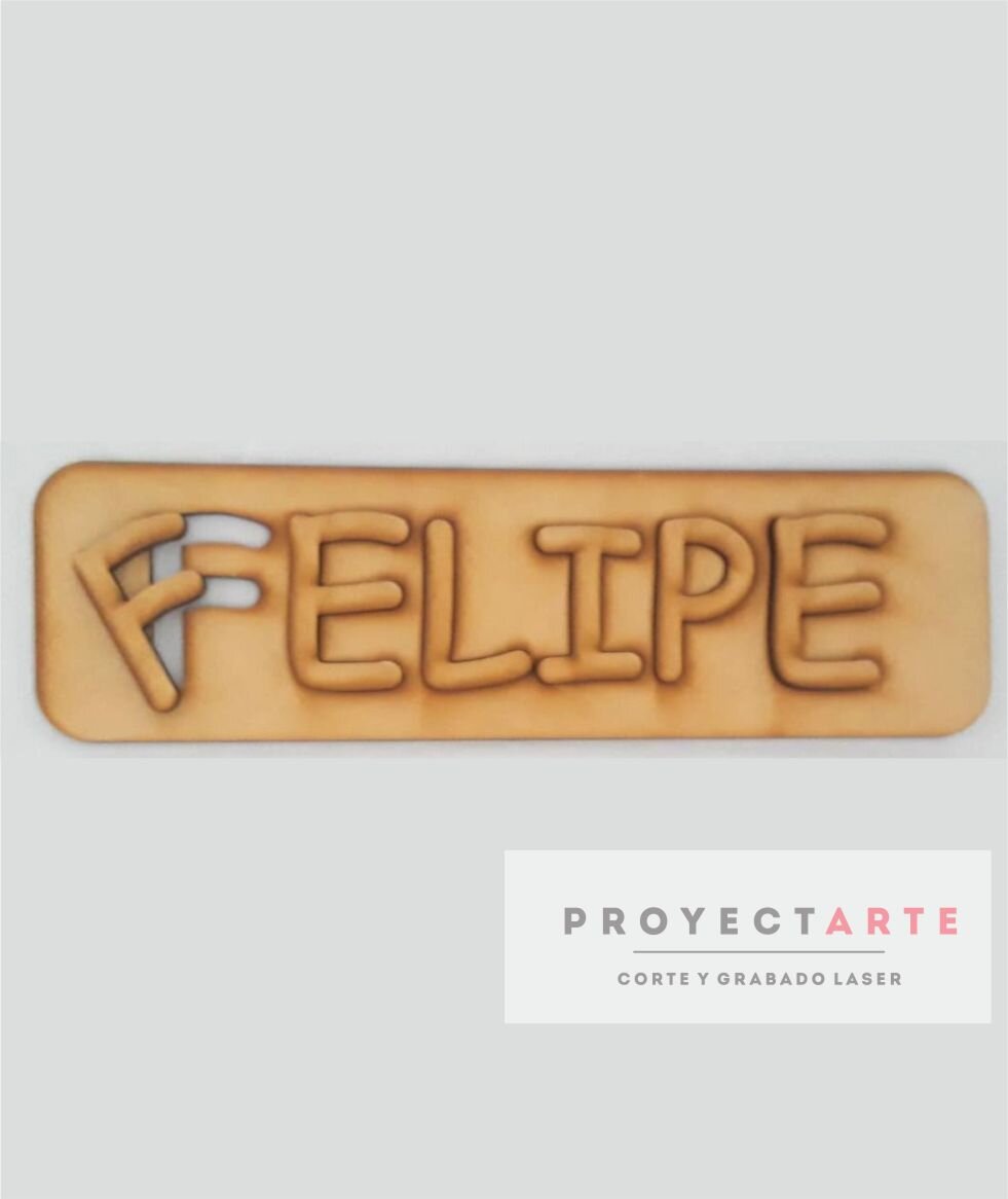 Realizado en mdf de 3mm en frente y fondo, letras en mdf de 5.5mm