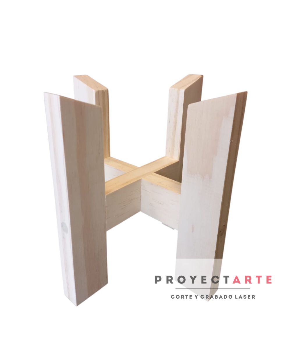 Soporte para macetas. Medidas 12x12cm interior, altura 20cm. La foto corresponde al producto con lateral abierto.