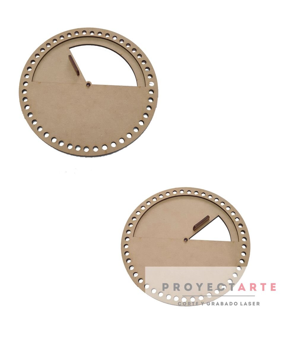 Se trata de la tapa para una pieza tejida en trapillo. Mide 20cm de diametro total y la tapa gira corrida por un pequeño agarre