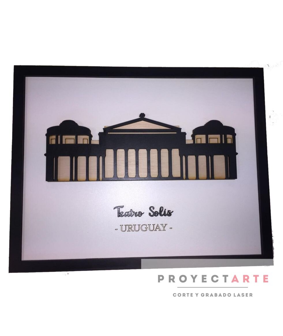 Cuadro 3D de la colección «Ciudades» realizado en fibra de madera con detalles y marco en laminado negro. Medidas: 19x24cm