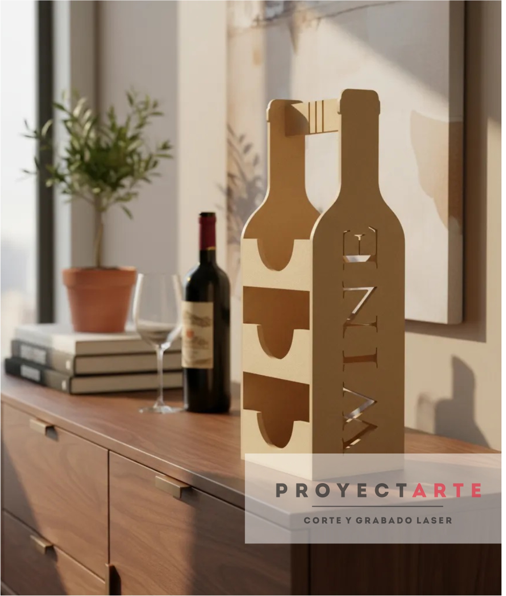 Vinera fabricada en mdf para 3 botellas. Soporte funcional y estético que permite almacenar y exhibir vinos de manera elegante.