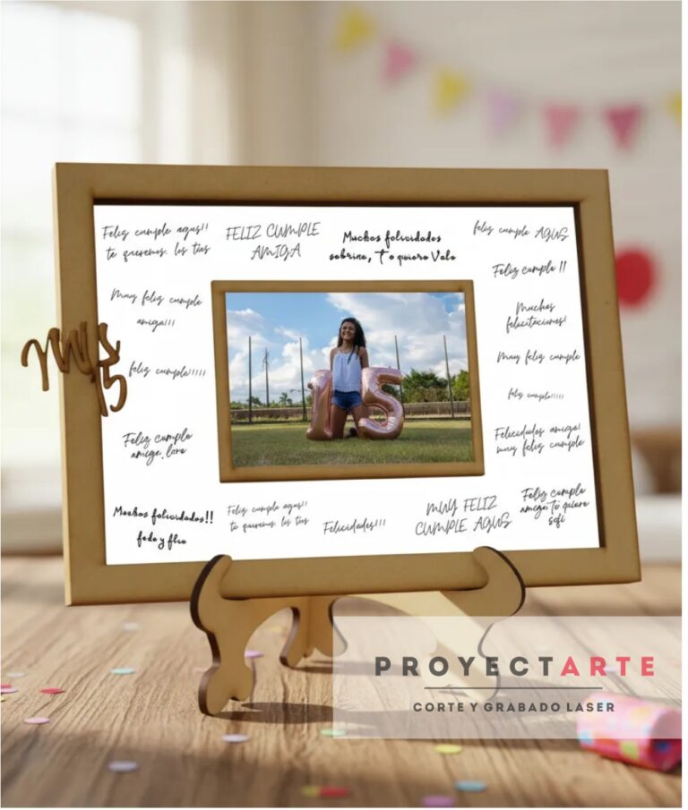 Cuadro para firmas con portarretrato grande en fibra de madera